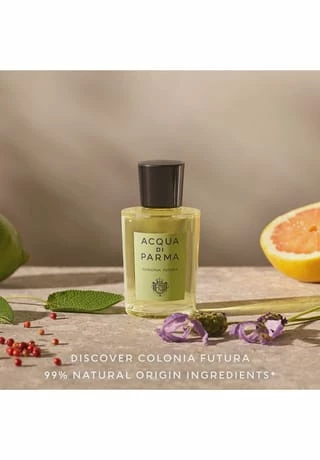 Colonia Futura ist Acqua di Parmas Liebeserklärung an die Natur, in der eine sprühende Explosion von wundervoll kombinierten und doch individuellen, natürlichen Inhaltsstoffen eine transparente Essenz hervorbringt, die vibrierend lebendig ist. Der Duft öffnet mit einem leuchtenden Spritzer Bergamotte, Grapefruit und Zitrone und einem Hauch von rosa Pfeffer. Ein dynamischer Auftakt, der im Herzen weich wird. Die Frische von Lavendel vereint sich mit dem aromatischen Muskatellersalbei. In der Basisnote bringt Vetiver durch erdige Akzente einen holzigen Touch hervor.
