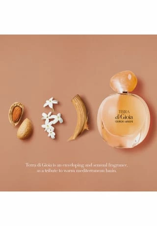 Die einhüllende Essenz des warmen und sinnlichen mediterranen Bodens. Mit dem neuen TERRA di Gioia kreiert Giorgio Armani einen Duft, der ihn selbst an die Wärme und Sinnlichkeit des südlichen Mittelmeers erinnert, dort wo sich üppige Dünen mit Bernsteinfelsen vermischen, die an weite Meere grenzen. TERRA di Gioia, schwebt, wie eine umhüllende Stola, über den zauberhaften Gebieten des Mittelmeers.